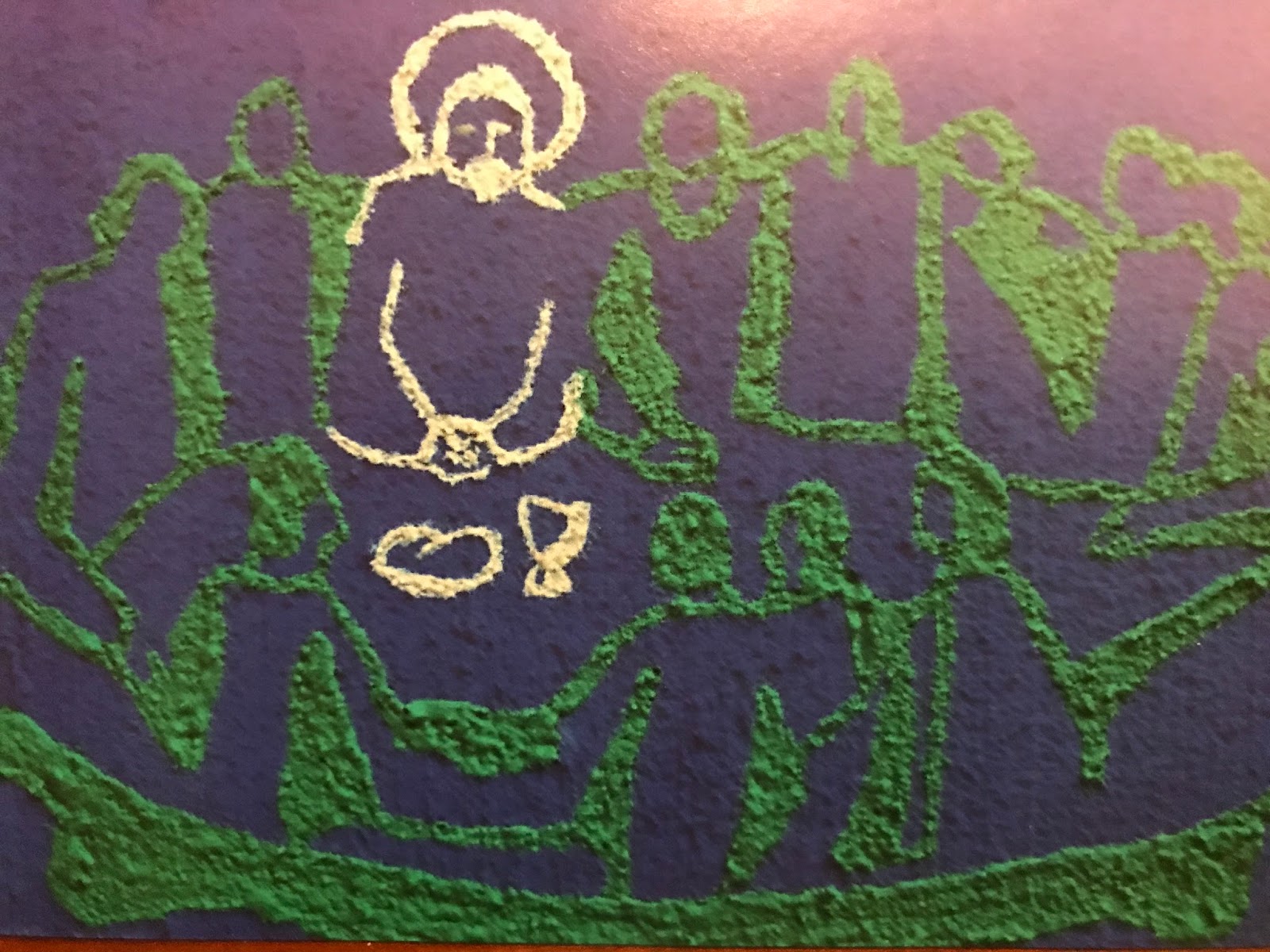 Não sei de quem é o desenho, uma Última Ceia onde Jesus Cristo se destaca de todos os outros pela cor branca com que foi representado. Parece-me que pode percorrer-se o contorno de todos o apóstolos - e também de Cristo - sem nunca tirar o dedo do cartão, como se houvesse uma corrente ininterrupta e clara quanto a Quem ordena quem, e quem ordena outro quem, e esse quem que ordena outro quem - até chegar ao Miguel, que no meu léxico é o Sr. Vasconcelos. Como se houvesse uma corrente ininterrupta de amor que não pode nem deve desfazer-se, porque é aquilo que nos liga à eternidade e ao que é importante nesta vida.